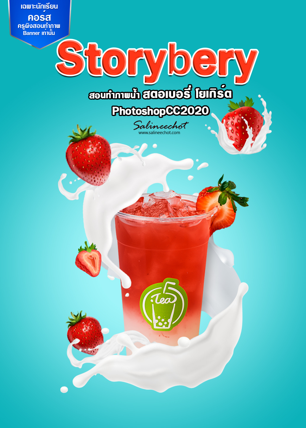 EP329 สอนทำภาพน้ำ สตอเบอรี่ โยเกิร์ต Photoshopcc2020-3