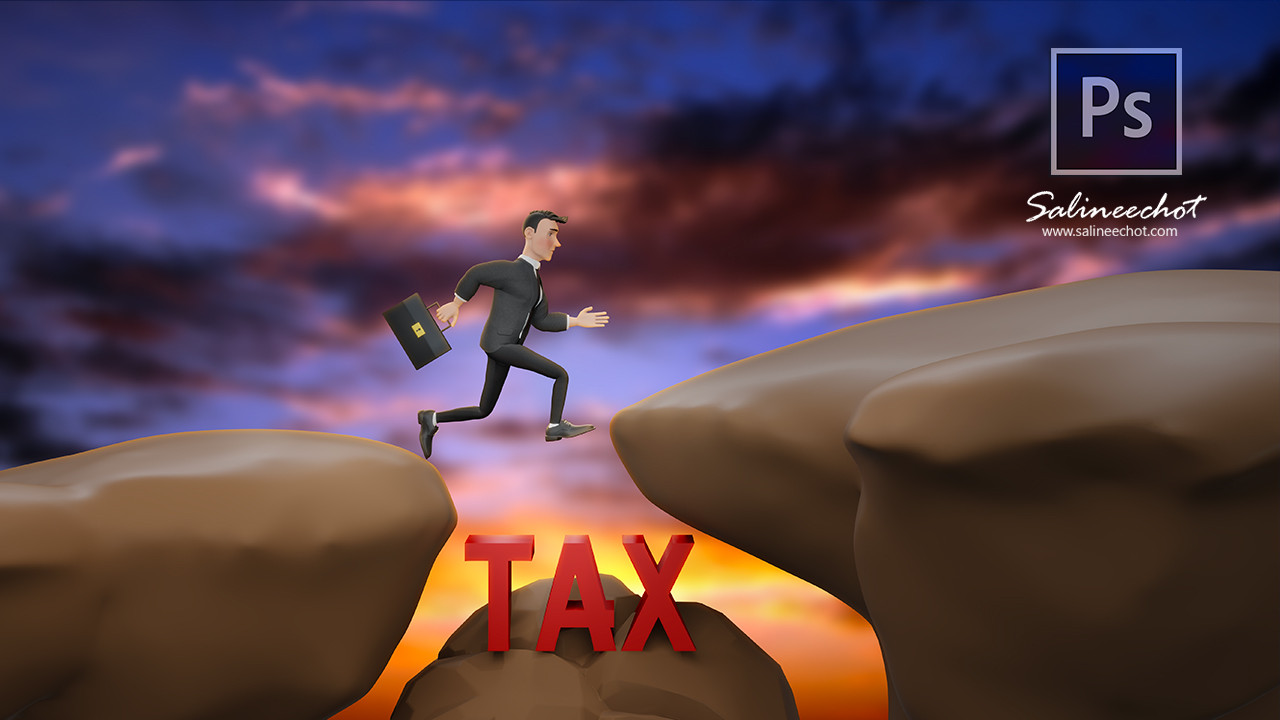 EP423เทคนิคการประกอบภาพ Business man jumping tax hole ด้วย photoshop 2022